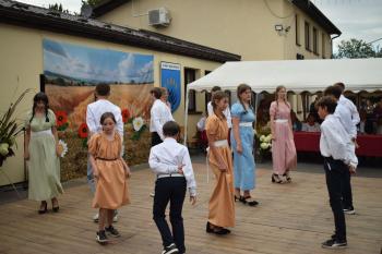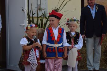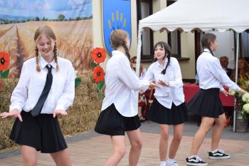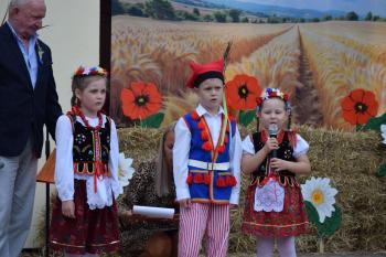 Po przywitaniu oraz krótkich przemowach gości, nadszedł czas na część artystyczną. Po tradycyjnej pieśni „Plon niesiemy, plon” i wręczeniu wieńca dożynkowego oraz chleba, scena została oddana do dyspozycji dzieciom oraz młodzieży. Nie zabrakło krakowiaka, poloneza, a także recytacji wierszy przez najmłodszych. Pojawili się także członkowie Zespołu Pieśni i Tańca „Bratkowie”, którzy zagrali i zaśpiewali przed zebranymi. Poza tradycyjnymi pozycjami, na zebranych czekał pokaz tańca nowoczesnego a także nie jeden, a dwa skecze kabaretowe. Gdy część oficjalna dobiegła końca, rozpoczęła się zabawa taneczna.