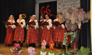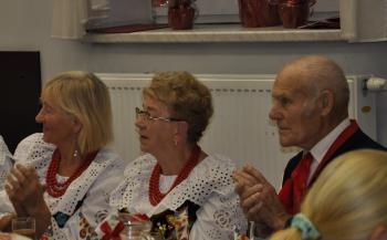 Główne uroczystości odbyły się w grojeckim Domu Ludowym, gdzie pojawili się zaproszeni goście. Życzenia i gratulacje dla wszystkich członków zespołu „Grojczanie” oraz Pań z KGW na ręce przewodniczącej KGW - Marii Śliwki złożył Wójt Gminy Oświęcim Mirosław Smolarek, który na jubileuszowych obchodach pojawił się wraz z małżonką Beatą.