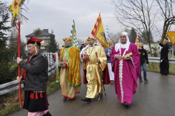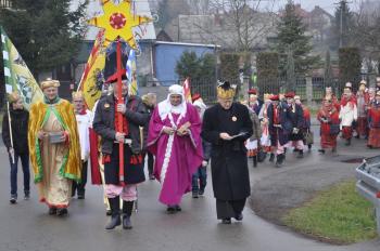 Kolędowanie zaintonował Chór Męski pod kierunkiem Edwarda Baścika, w którym znaleźli się również sołtys Dworów Drugich Stanisław Nowotarski i sołtys Stawów Monowskich Arkadiusz Kuwik. Ksiądz proboszcz Jan Dewera podkreślił szczególną więź łączącą w tym dniu Włosienicę z Ziemią Świętą i poprosił o sformowanie Orszaku, który następnie pomaszerował w kierunku kościoła.