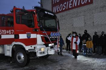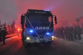 Poświęcenie samochodu i przecięcie wstęgi poprzedziły wystąpienie druha Piotra Patrzyka, który przypomniał starania o nowy wóz rozpoczęte we wrześniu 2019 roku. Sekretarz OSP Włosienica długo dziękował ludziom i instytucjom za wsparcie i pomoc, które wyrażały się nie tylko w formie finansowej:
