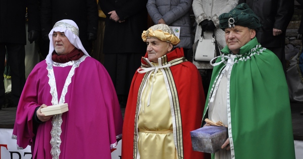 Kacper, Melchior i Baltazar poprowadzili orszak parafian spod szopki urządzonej przy remizie do kościoła św. Michała Archanioła. W świątyni wierni obejrzeli filmowy zapis jasełek przygotowanych przez przedszkolaki, a do wspólnego kolędowania zaprosił zespół Bratkowie z Monowic.