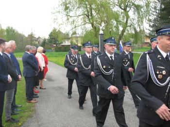 Zabrali głos goście zaproszeni: Pan Piotr Polanek, oraz w imieniu wójta gminy Oświęcim Pani Halina Musiał, po czym nastąpiło wyprowadzenie pocztu sztandarowego OSP.