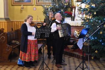 Uroczystość w kościele prowadził Stanisław Krzemień, koordynator Orszaku organizowanego w tym roku w Polsce i poza jej granicami pod hasłem "W jasełkach leży". Kolędowanie stało się okazją do wręczenia honorowych dyplomów działaczom Stowarzyszenia Ofiar Wojny. Kolędy i pastorałki intonowały chór parafialny, zespół Włosianeczki, parafialna schola, monowicki zespół Bratkowie oraz góralska kapela Straconka.