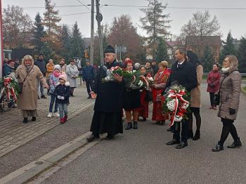 Obchody rozpoczęły się mszą świętą w Kościele Parafialnym. Później pod pomnikiem Orła Niepodległości zgromadzeni odśpiewali hymn, a przedstawiciele władz gminy, sołectwa, organizacji pozarządowych oraz oświaty złożyli wiązanki.