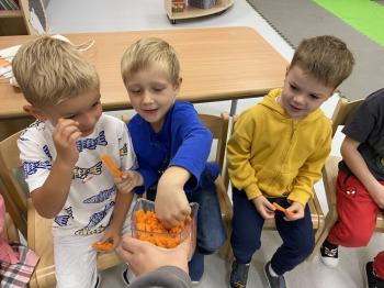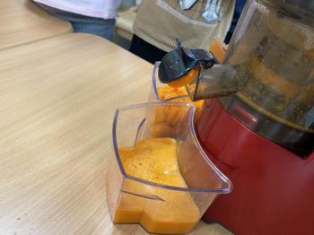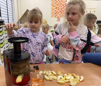W ramach projektu „Witaminki” dzieci poznały kolejne warzywo – marchewkę. Dowiedziały się, jak wygląda, jak smakuje i gdzie rośnie poznane warzywo. Rozmawiały o tym, co można przygotować z marchewki, a na zakończenie zajęć samodzielnie wykonały pyszny, zdrowy sok marchwiowy.