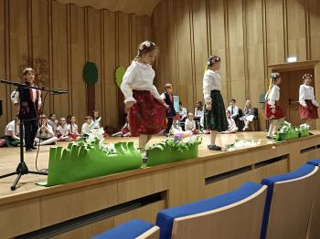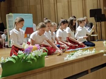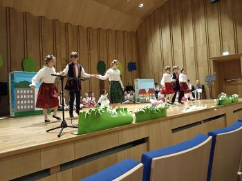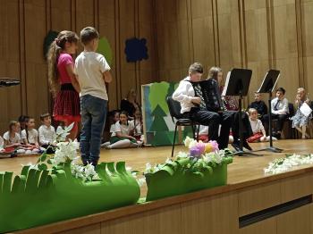 W dniu 13 maja grupa „Żabek” pojechała do Szkoły Muzycznej w Oświęcimiu na spektakl „O zagubionej baletniczce”. Dziewczynka Marysia wraz z przyjaciółmi wyruszyła w podróż pociągiem, aby odnaleźć baletniczkę. Po drodze poznała wiele ciekawych osób grających na różnych instrumentach takich jak: skrzypce, akordeon, ksylofon, cymbałki, waltornia i gitara, oraz tańce pasujące do danej melodii: polka lubelska, cebula, oberek, kujawiak, polonez. Muzyka ta bardzo spodobała się zagubionej baletnicy, która postanowiła powrócić. „Żabki” również powróciły do przedszkola w bardzo dobrych humorach. |