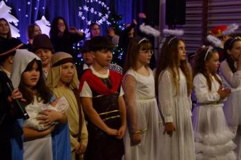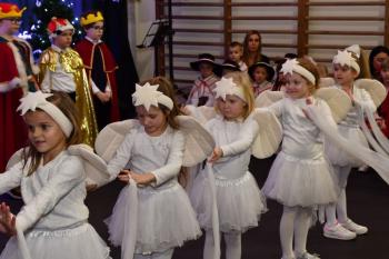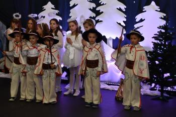 Dzieci zachwyciły publiczność swoimi występami, nie zabrakło również tradycyjnych jasełek, które wprowadziły wszystkich w świąteczny nastrój.