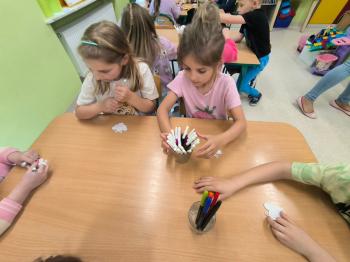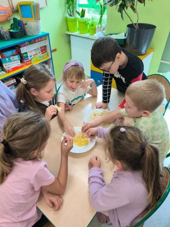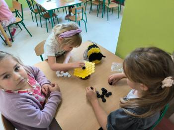 20 maja obchodziliśmy Międzynarodowy Dzień Pszczół, z tej okazji nasze przedszkolaki na zajęciach dowiedziały się jak ważną rolę odgrywają pszczoły w naszym ekosystemie. Na początku dzieci obejrzały film edukacyjny, aby następnie wykonywać różne ćwiczenia związane z tematyką pszczółek. Nie zabrakło również ćwiczeń matematycznych, w których dzieci doskonaliły umiejętność przeliczania oraz rozpoznawania cyfr. Była praca w grupach, praca indywidualna, zabawa sensoryczna oraz praca plastyczna, której główną bohaterką oczywiście była pszczoła. Dzieci rozwijały również swoją sprawność fizyczną podczas ,,Pszczółkowej gimnastyki". Na koniec dzieci miały okazję delektować się pysznym miodem z andrutami, oraz poznały jego zdrowotne właściwości.