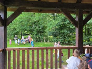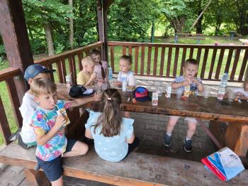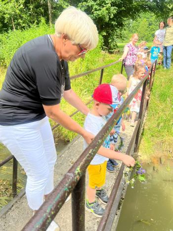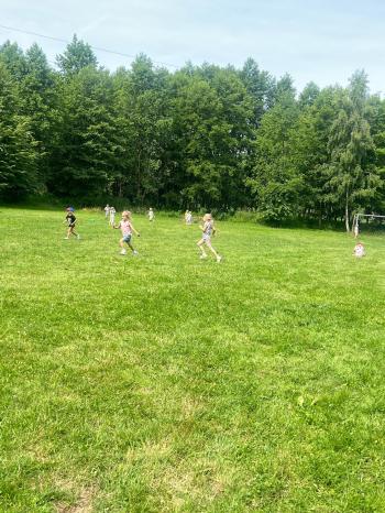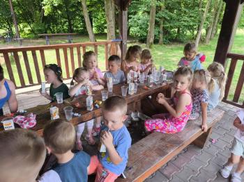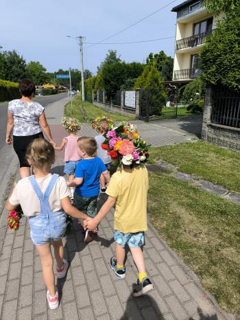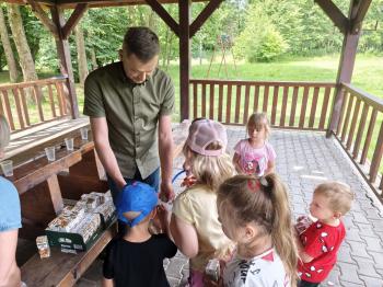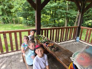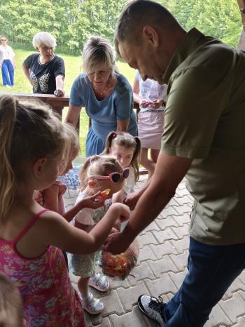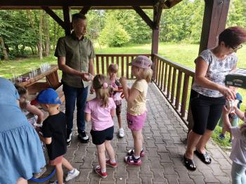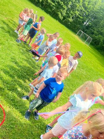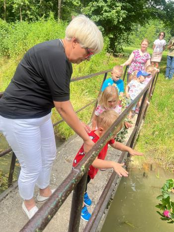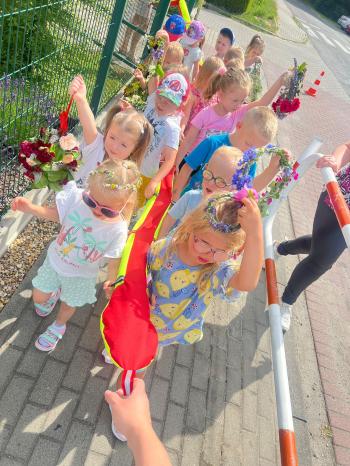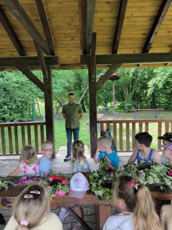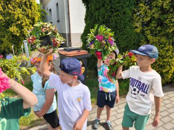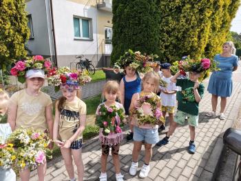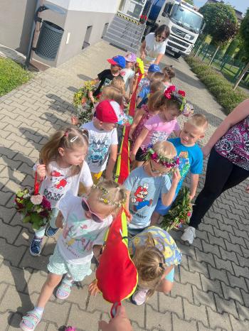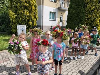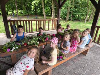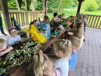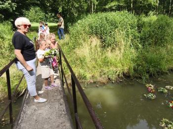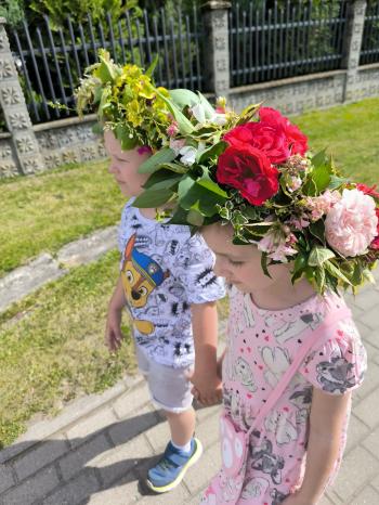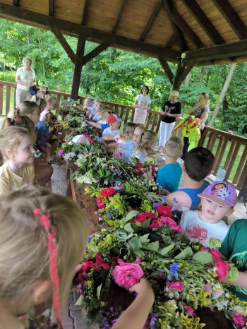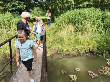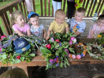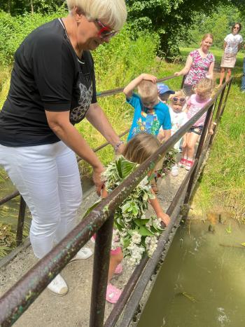 Zgodnie z tradycją, w dniu 23 czerwca nasze przedszkolaki uczestniczyły w tradycji ludowej jaką jest puszczanie wianków na wodę. Po śniadaniu wszystkie grupy wspólnie udały się na boisko obok pobliskiej rzeki Macochy. Czekał tam na nas sołtys Włosienicy Pan Krzysztof Kwadrans, który przywitał wszystkich a następnie zapoznał dzieci z krótką historią puszczania wianków. Po wysłuchaniu Pana sołtysa, każda z grup po kolei udała się nad rzekę, gdzie każdy przedszkolak rzucał swój wianek w nurt rzeki. Po powrocie znad rzeki, na dzieci czekała niespodzianka w postaci słodkiego poczęstunku, przygotowana przez Pana Sołtysa. Następnie dzieci miały czas na zabawy na łonie natury, gdzie mogły pobiegać i pograć w piłkę.