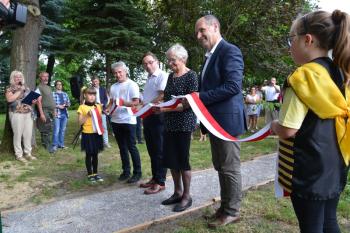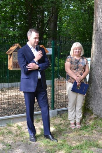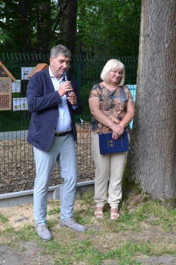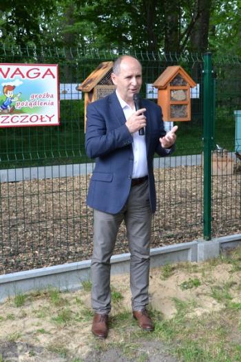 Otwarcia pasieki edukacyjnej dokonali, przecinając wstęgę, wójt Mirosław Smolarek, dyrektor Zespołu Szkolno-Przedszkolnego w Harmężach Bartłomiej Karolus, prezes Koła Pszczelarzy Ziemi Oświęcimskiej Bogusław Raj oraz Irena Krawczyk – wdowa po śp. Józefie Krawczyku, prezydencie Oświęcimia na przełomie lat 90. i dwutysięcznych, staroście w latach 2010-2014, który był również pasjonatem pszczelarstwa. Podarowane przez panią Irenę pszczoły znalazły miejsce w pasiece, która ma służyć młodzieży z gminy Oświęcim.