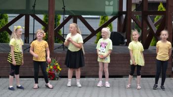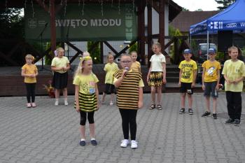 Uczniowie szkoły w Harmężach przestawili piosenki, wiersze i tańce, których tematem były oczywiście pszczoły. Specjalnym punktem programu był zaimprowizowany przed sceną telewizyjny program. W trakcie tego występu trwało już miodobranie. Odwirowaniem ramek w miodarce zajęli się wójt Smolarek i dyrektor Karolus. Po kilku chwilach słoiczki zostały napełnione miodem, który eksperci uznali za spadziowy.