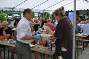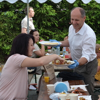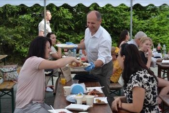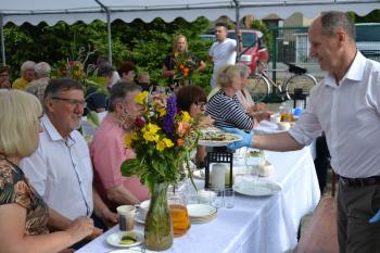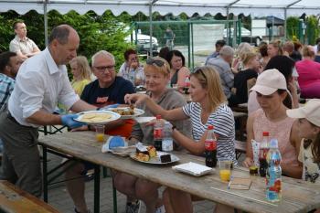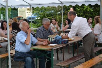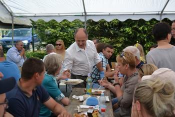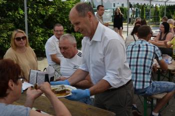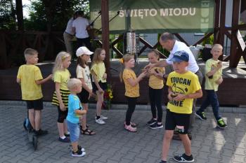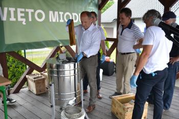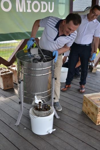 Zebrani zostali zaproszeni do degustacji plastrów miodu przez wójta Smolarka, któremu na Święcie Miodu towarzyszyła małżonka. Wśród gości imprezy przed harmęskim Domem Ludowym byli również m.in. przewodnicząca Rady Gminy Bernardyna Bryzek, starosta oświęcimski Andrzej Skrzypiński, prezydent Oświęcimia Janusz Chwierut, sołtys Harmęż Adam Zieliński i Tadeusz Dziędziel z firmy OMAG, która sponsoruje pasiekę edukacyjną.