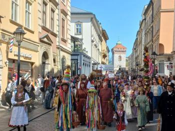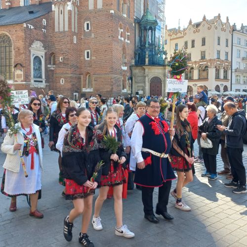Uczestnicy wydarzenia zebrali się przy Barbakanie, skąd korowód wyruszył ulicą Floriańską, okrążył Rynek Główny, aby uczestniczyć w uroczystości poświęcenia palm przy kościele Św. Wojciecha.