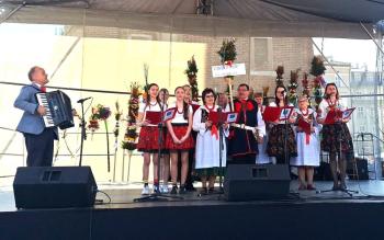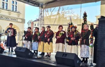 Po poświęceniu palm wszystkie zespoły, a było ich blisko 30, występowały na scenie pod Ratuszem, śpiewając pieśni wielkopostne przed wielotysięczną publicznością odwiedzającą Jarmark Wielkanocny.
