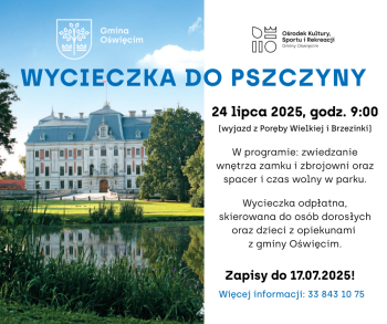 Ośrodek Kultury, Sportu i Rekreacji Gminy Oświęcim zaprasza do wzięcia udziału w wycieczce do Pszczyny, która odbędzie się 24 lipca br.