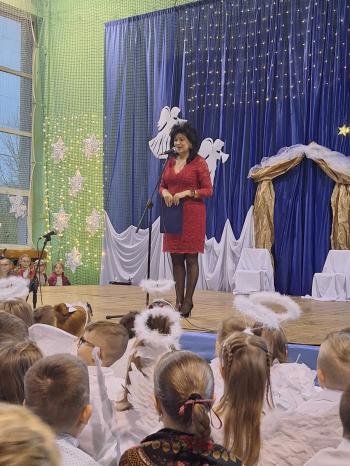 Po zakończonym występie widownia nagrodziła uczniów gromkimi brawami, a Dyrektor Szkoły Pani Cecylia Stokłosa złożyła zaproszonym gościom noworoczne życzenia.