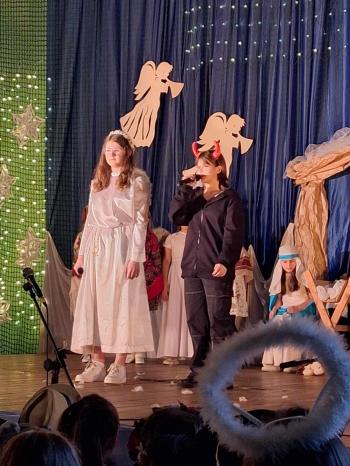 Spektakl w wykonaniu uczniów naszej szkoły, był widowiskiem niezwykle magicznym i zapierającym dech w piersiach. W tym roku przedstawieniu towarzyszyły głośno odśpiewane przez najmłodszych uczniów pastorałki. Uroku dodawały stroje, rekwizyty oraz dekoracja, a także umiejętności aktorskie i wokalne występujących.
